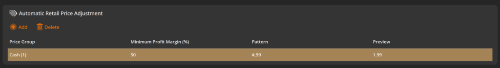 You can also add a price pattern rule on top of this. This forces all new prices to end in a specific way — like .99, .00, or any other rounding logic you prefer.