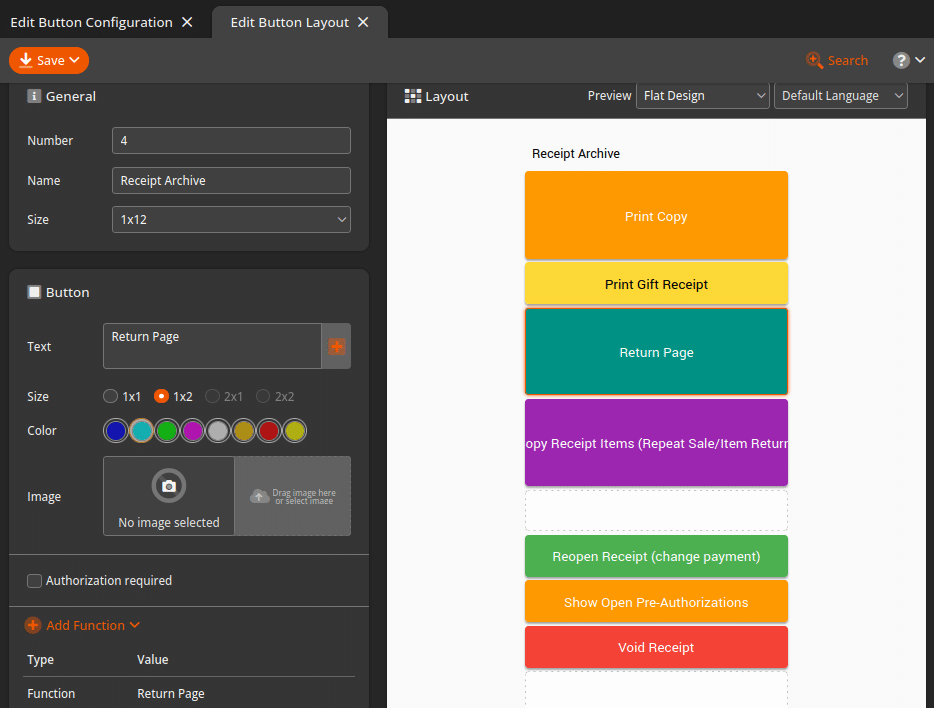 If you would like to add or remove any additional options under the Receipt Archive area, please refer to our Create POS Buttons / Button Configuration manual page.