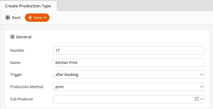 First, go to Settings > Production Types. Create a new one. Name it “Kitchen Print” or something similar.