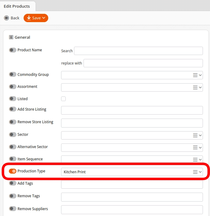 After pressing Edit, find the Production Type section and add the production type you created earlier.