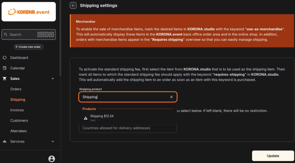 How to Add Merchandise and Setup Shipping in KORONA Event