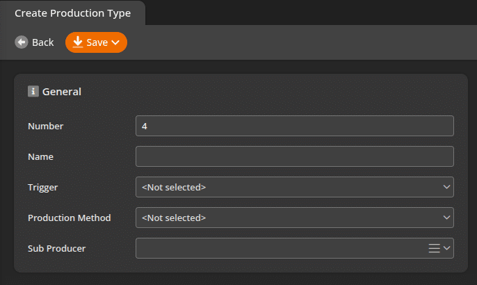 Finally, the sub-producer field assigns another production type that is already created to this production type. Once you have all your options set, click on the Save button.