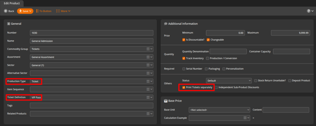 Now that you created your Production Type and assigned it to a POS Profile, you will need to attach it to any ticket you created. This will allow the printing of your tickets so that they may be checked at your entry gates.
