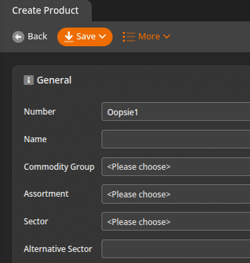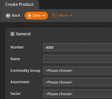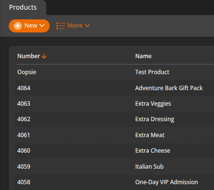 If done correctly, when hitting the +New button to create a new product, the automatic number generated should be the next highest number in the sequence. In our example, we can see that the system is using the next number in the sequence, 4066.