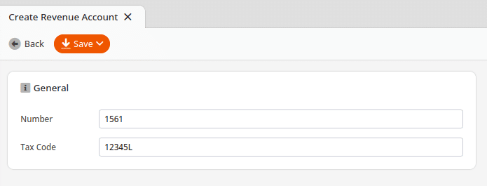 Once you are on the Revenue Account page, click New. Give it a Number and a Tax Code, and click Save.