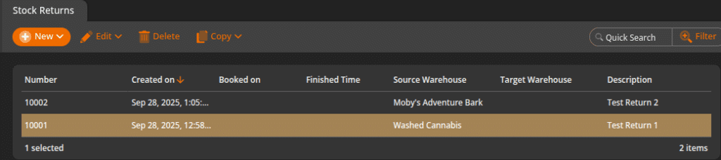 To create a stock return you will need to navigate to Inventory > Stock Returns and click on +New.